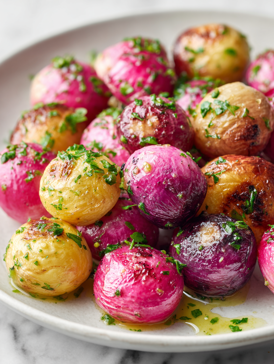 • I started making this dish on hectic weeknights when I needed something quick but satisfying. The smell of garlic and thyme filling the kitchen as they roast is oddly calming, a small ritual that turns the ordinary into something special. Over the years, it’s become a little tradition—an easy way to make radishes feel like a treat, not just a veggie side.