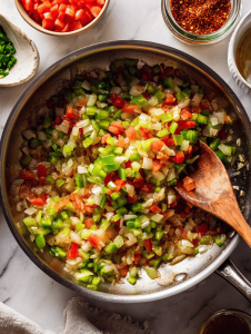 • Holy trinity (onion, celery, bell pepper): Base flavor and crunch. Use poblano or fennel bulb if you want a twist.