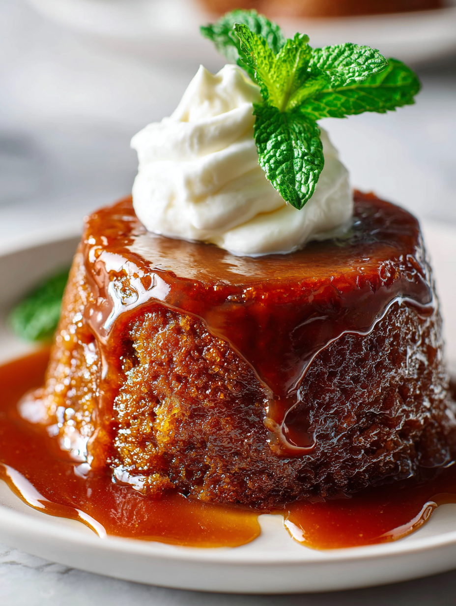 • Toffee sauce: bubbling and thickened, coats the pudding.